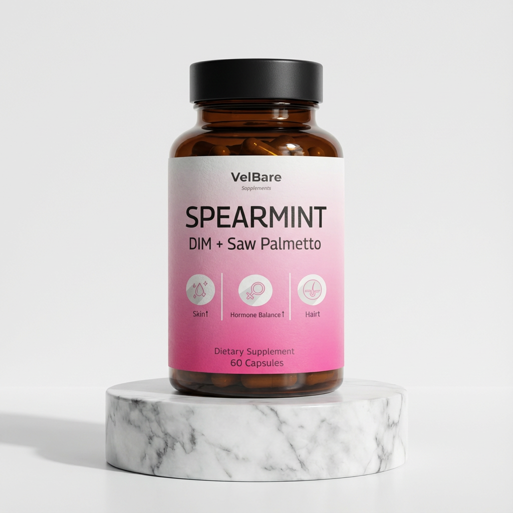 Gentle, natural formula powered by Spearmint, Saw Palmetto, and DIM—suitable even for hormonal sensitivities
