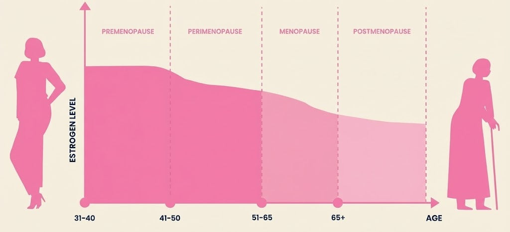 Look at the chart above. Notice how your estrogen levels—the hormone responsible for soft, smooth, feminine skin—plummet as you move through perimenopause, menopause, and beyond.